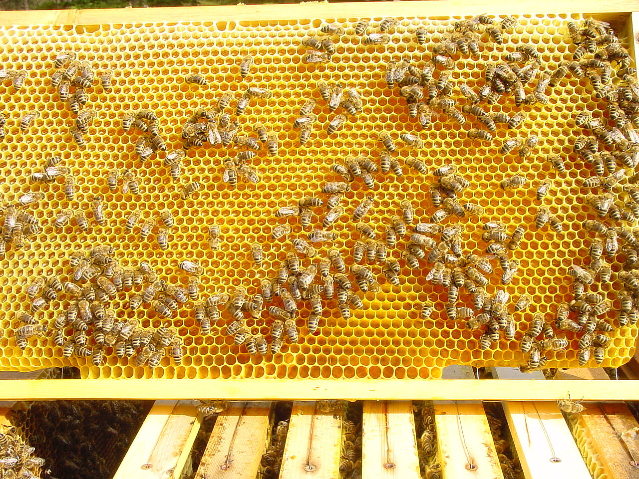 Das Innenleben eines Bienenstockes über die Monate ist bewundernswert. Von Februar (Haselblüte) bis Mitte Juni wird der gesamte eingetragene Bollen und Nektar zur Brutpflege verwendet.