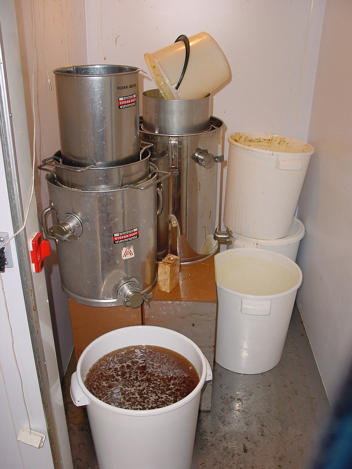 Erst dann kann man den Honig in Gläser zu 250 Gr., 500 Gr., oder 1 Kilo abfüllen, Etikettieren und verkaufen.
