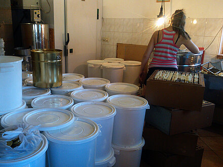 Erst dann kann man den Honig in Gläser zu 250 Gr., 500 Gr., oder 1 Kilo abfüllen, Etikettieren und verkaufen.