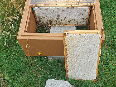 Das Innenleben eines Bienenstockes über die Monate ist bewundernswert. Von Februar (Haselblüte) bis Mitte Juni wird der gesamte eingetragene Bollen und Nektar zur Brutpflege verwendet.